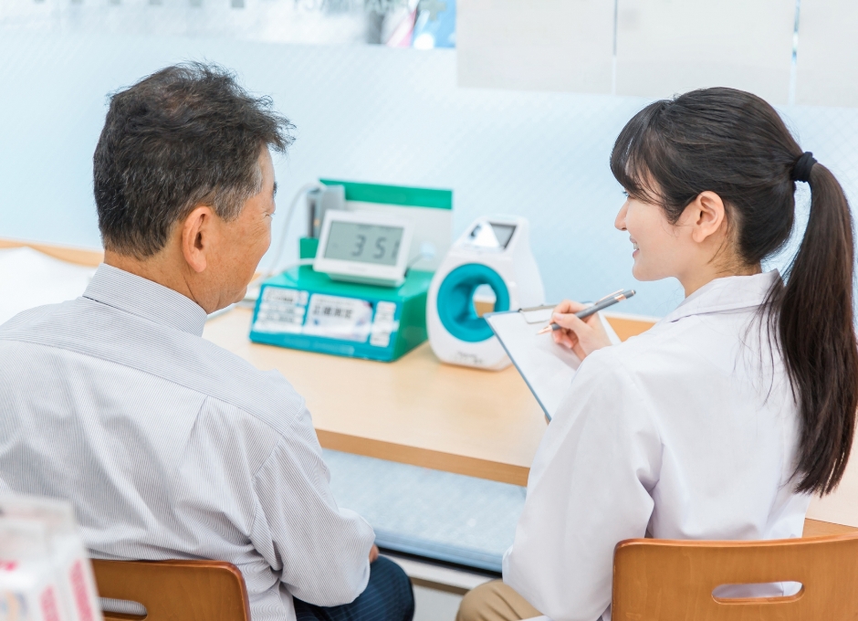 野菜摂取量の測定を行いました。約100名の方に測定をしていただき、